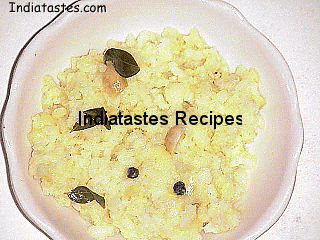 Add 1 cup of water to 1/2 cup Moong dal and boil it in the pressure cooker until it becomes very soft. Roast Rava in 4 tsps of oil. Add two cups of boiling water and stir until the rava is fully cooked. Mash the cooked Moong dal and add it to the rava. Add salt and mix well.