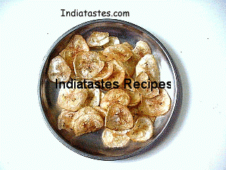 Banana Chips RECIPES Posted on February 13, 2012 by geetha.k00February 13, 2012 Take large sized plantains (unripe ones) and cut into half. Remove the skin. Heat oil and when it comes to boil, slice the plantains directly into the oil using a chips slicer. Turn over until fully cooked and crisp.