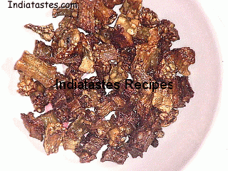 wash okra , drain and cut into cubical pieces Spread it on a large plate and leave it until all the water is evaporated . Soak it in sour curd and add salt. Leave it for 1/2 hour . Dry this in hot sun for two days. Store in air tight containers